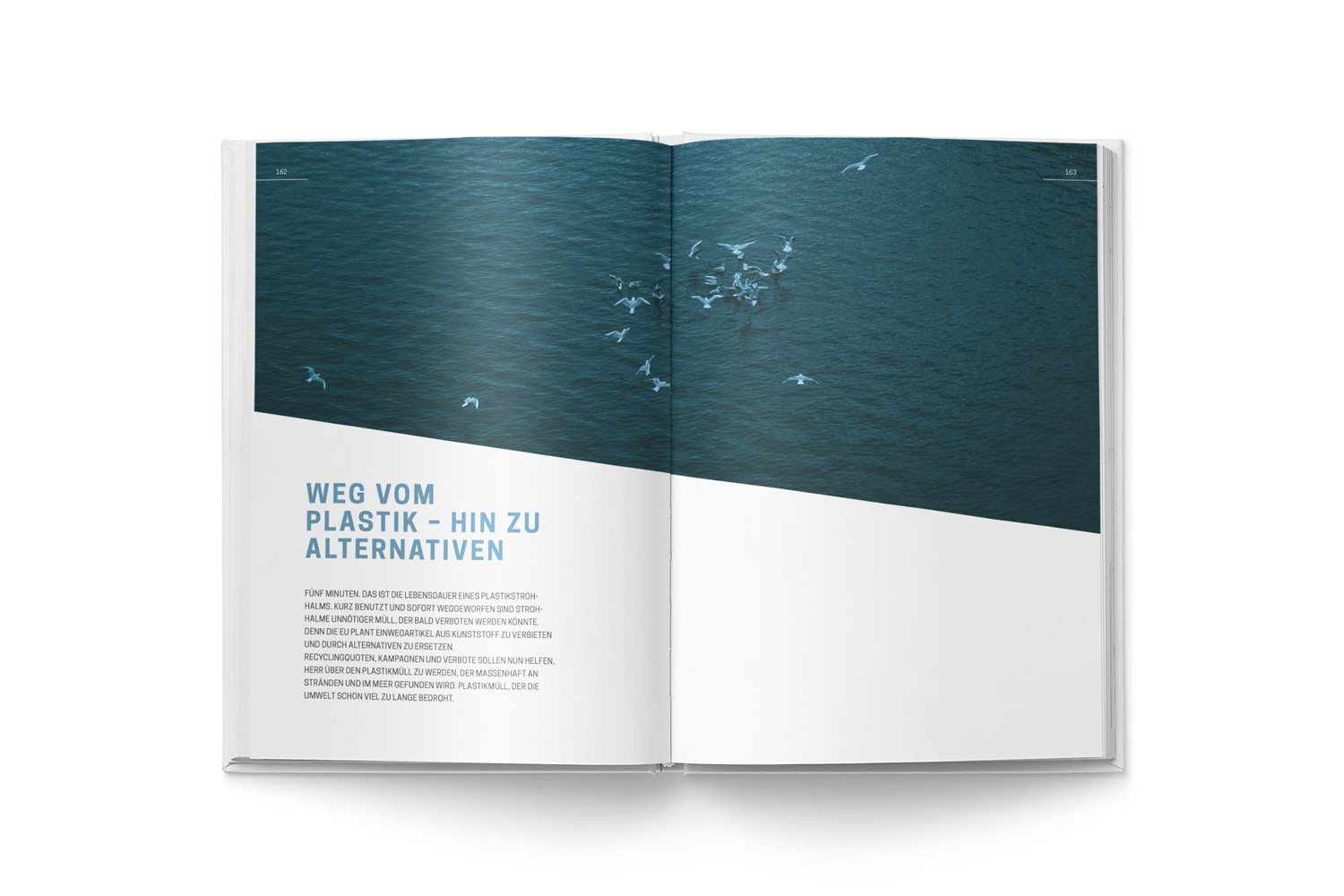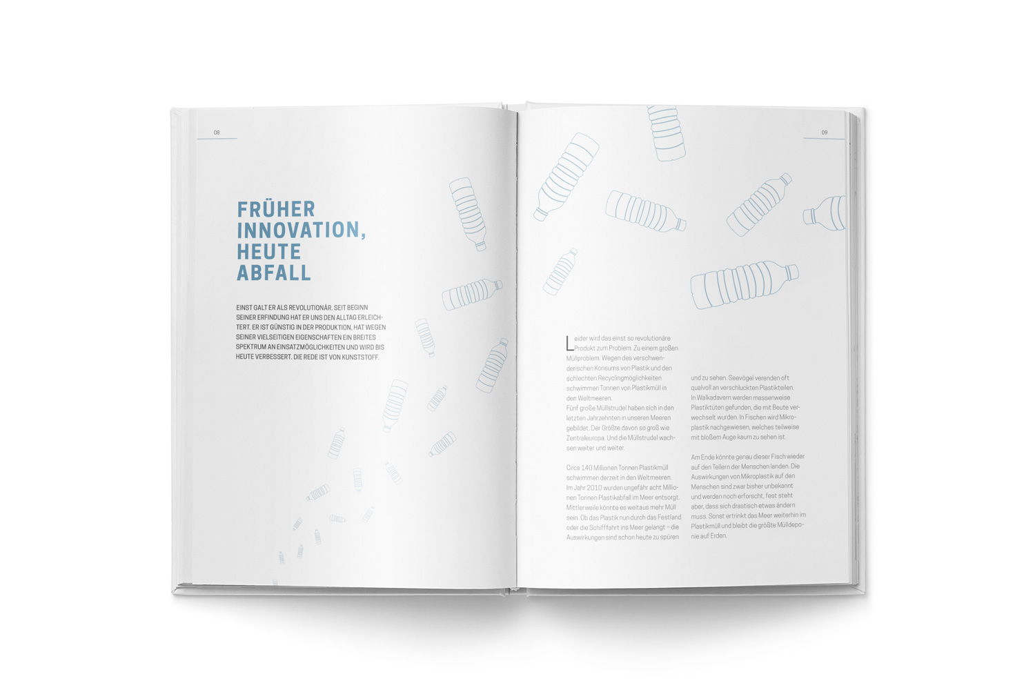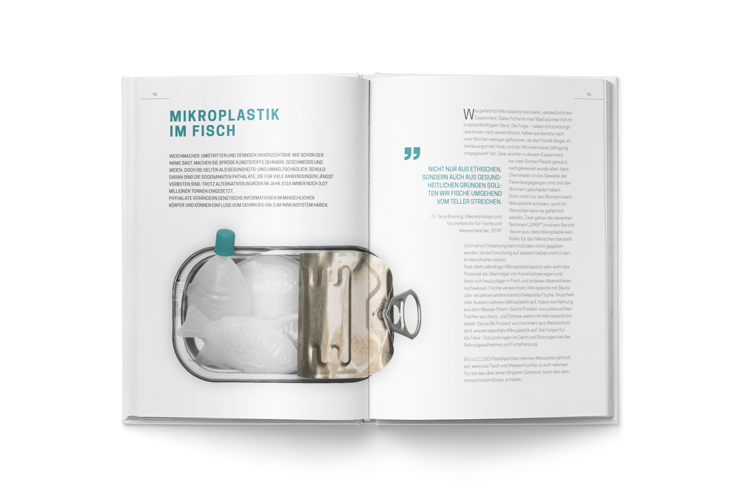 Das Jahr 2050 könnte das Jahr sein, indem es mehr Plastik als Fische in den Meeren gibt. Circa 140 Millionen Tonnen Plastikmüll schwimmen derzeit in den Weltmeeren. Ob das Plastik nun durch das Festland oder die Schifffahrt in die Ozeane gelangt – die Auswirkungen sind schon heute zu spüren und zu sehen. In meiner Bachelorarbeit »PLASTIKFLUT« beschäftigte ich mich mit dem Thema Plastik in den Meeren. Angefangen bei der Geschichte der Kunststoffe, über Entsorgungsschwierigkeiten, bis hin zu Lösungsmöglichkeiten und Tips zur Vermeidung von Plastik, schafft »PLASTIKFLUT« auf 182 Seiten einen Überblick über das große Thema des Plastiks in den Meeren.