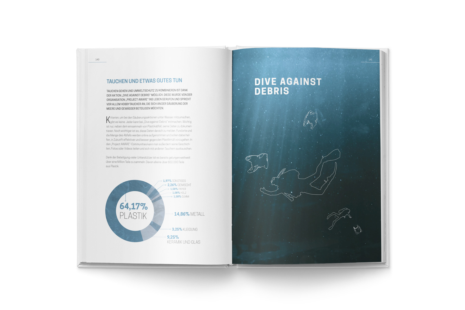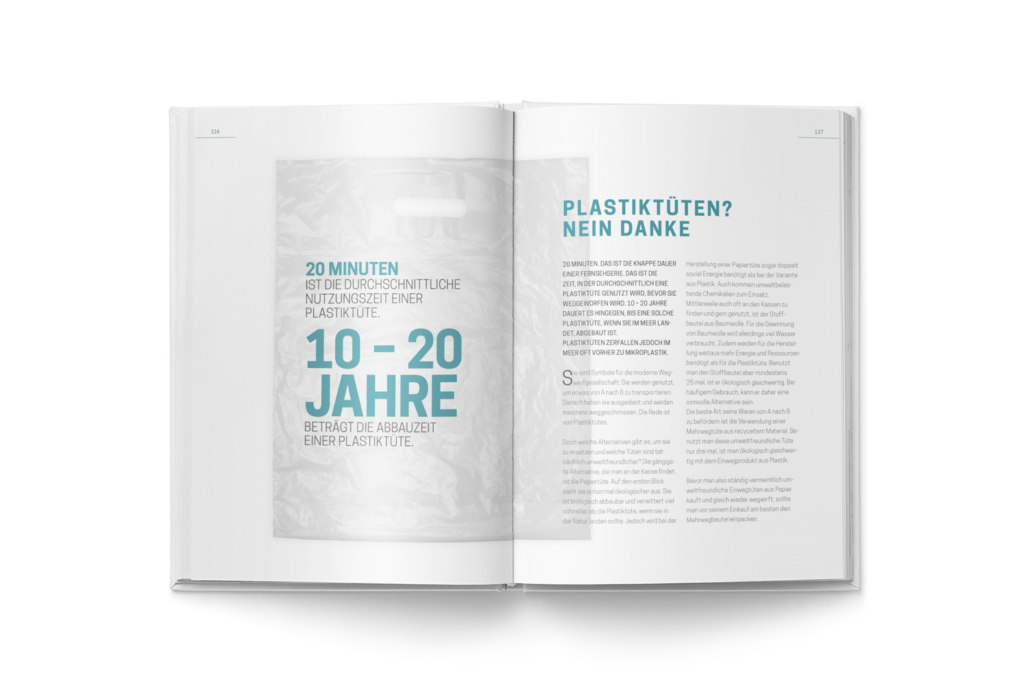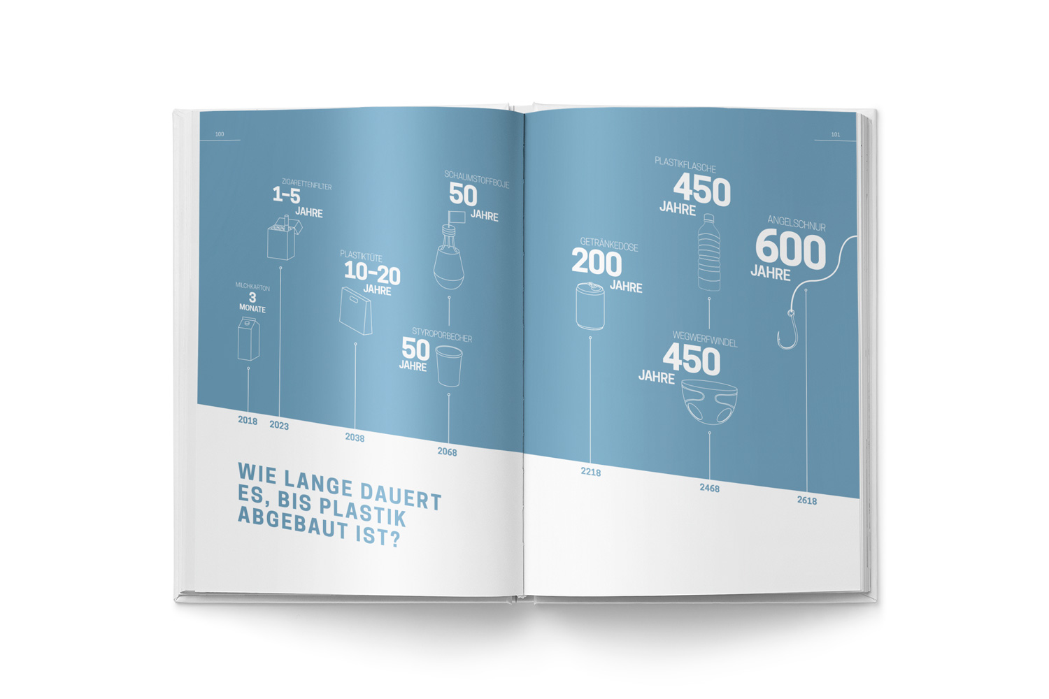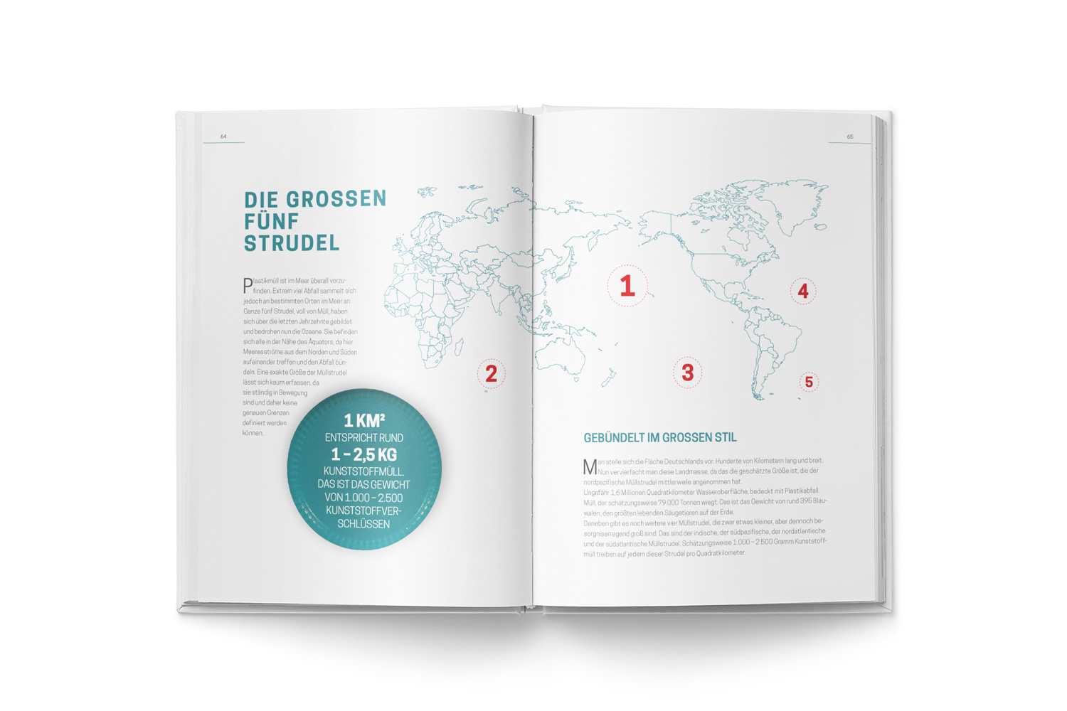 Das Jahr 2050 könnte das Jahr sein, indem es mehr Plastik als Fische in den Meeren gibt. Circa 140 Millionen Tonnen Plastikmüll schwimmen derzeit in den Weltmeeren. Ob das Plastik nun durch das Festland oder die Schifffahrt in die Ozeane gelangt – die Auswirkungen sind schon heute zu spüren und zu sehen. In meiner Bachelorarbeit »PLASTIKFLUT« beschäftigte ich mich mit dem Thema Plastik in den Meeren. Angefangen bei der Geschichte der Kunststoffe, über Entsorgungsschwierigkeiten, bis hin zu Lösungsmöglichkeiten und Tips zur Vermeidung von Plastik, schafft »PLASTIKFLUT« auf 182 Seiten einen Überblick über das große Thema des Plastiks in den Meeren.
